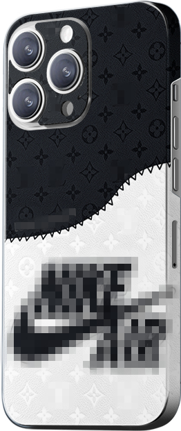 Design 283 (Bottom Right): This design features the Nike Air logo with a black and white Louis Vuitton pattern as the background. The style is minimalistic yet luxurious. The primary colors are black and white.