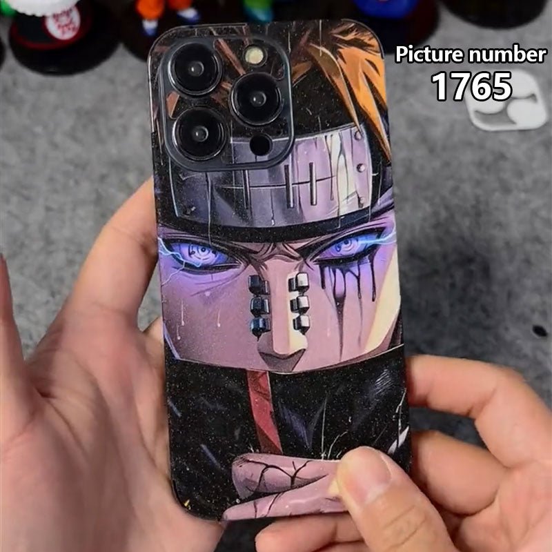 The phone skin sticker in this image (Picture number 1765) features a close-up of an intense character with distinct facial piercings and vibrant, piercing blue eyes. The character wears a headband with metallic details, and the color palette is primarily dark, with shades of black, purple, and hints of orange in the hair. The background has a dark, gritty texture, giving the design a dramatic and powerful feel, emphasizing the character’s strong and focused expression.