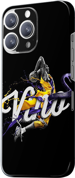 The design features Kobe Bryant in a dunking motion, with a black background that highlights his dynamic figure. The word “Vino” is written in purple and yellow, representing the colors of the Los Angeles Lakers. The overall design is simple yet powerful, filled with strength.