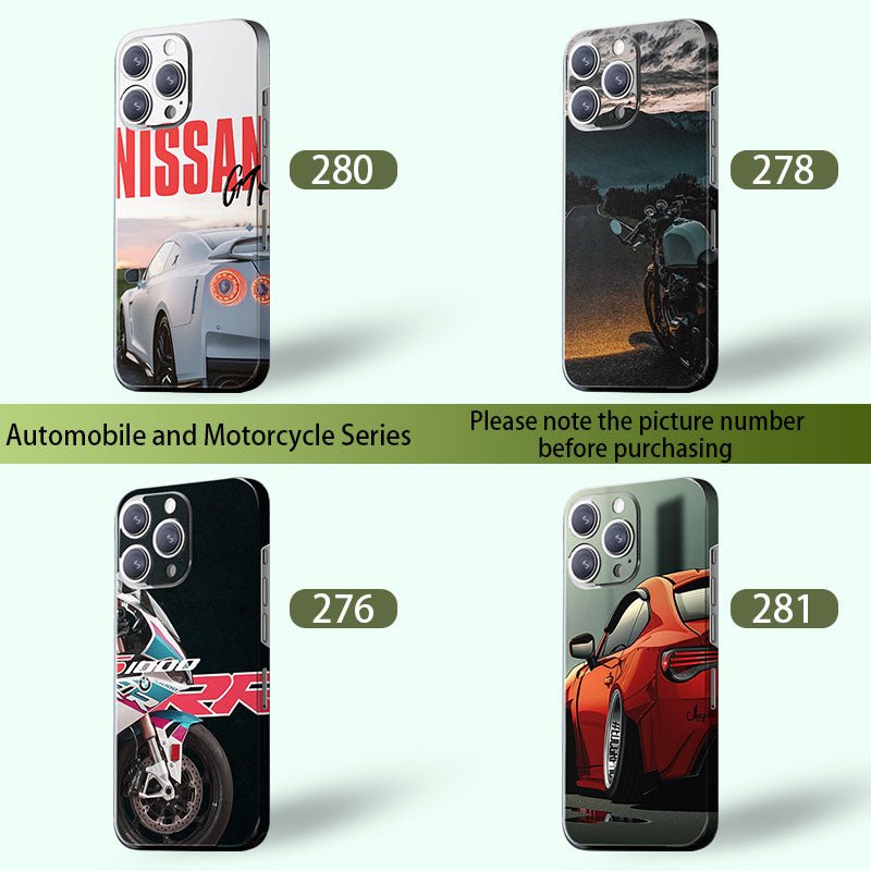 These phone skin designs cover a range of styles, from luxury sports cars to motorcycle racing, appealing to automotive and motorcycle enthusiasts with diverse tastes.