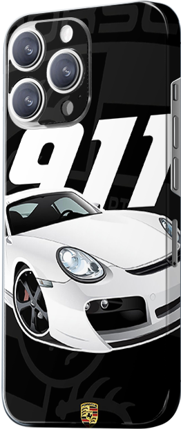 566 (Top Right): The design shows a white Porsche 911 with the front of the car facing the camera, set against a black background with the “911” text prominently displayed. The primary colors are white and black, creating a sleek and powerful look that highlights the classic and high-performance nature of the Porsche 911.