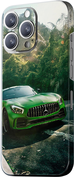 606 (Bottom Right): The design showcases a green Mercedes-AMG sports car, reflecting the surrounding greenery. It captures the fusion of nature and speed. The dominant color is green, with the car’s glossy finish blending with the background foliage, evoking a dynamic, natural energy.