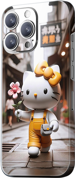 1872 (Top Left) Design: The design showcases a cute Hello Kitty image, set against the background of a Japanese street. Hello Kitty is holding a flower, and the overall design evokes a warm and cozy feeling, with white and pink as the main colors.