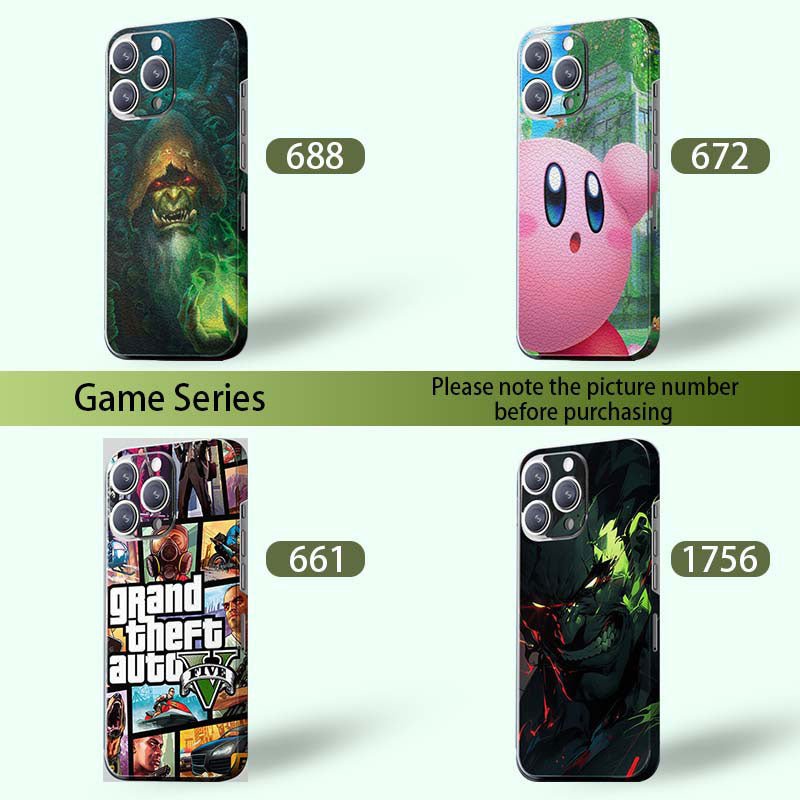 672 (Top Right): The design features the classic game character Kirby, set in a green forest scene. Kirby’s adorable pink figure stands out prominently. The main colors are pink, green, and blue, creating a cute and lively vibe.