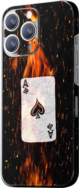 1446 (Top Left): The design shows an Ace of Spades playing card set against a background of fiery flames. The design exudes intensity and gaming elements. The main colors are black, white, and orange.