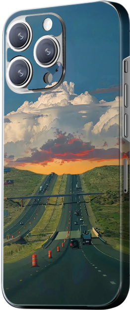 1339 (Bottom Left): The design shows a straight city street under a bright morning sky, with pastel clouds and a serene atmosphere. It conveys a modern, lively vibe. The main colors are blue and pink.