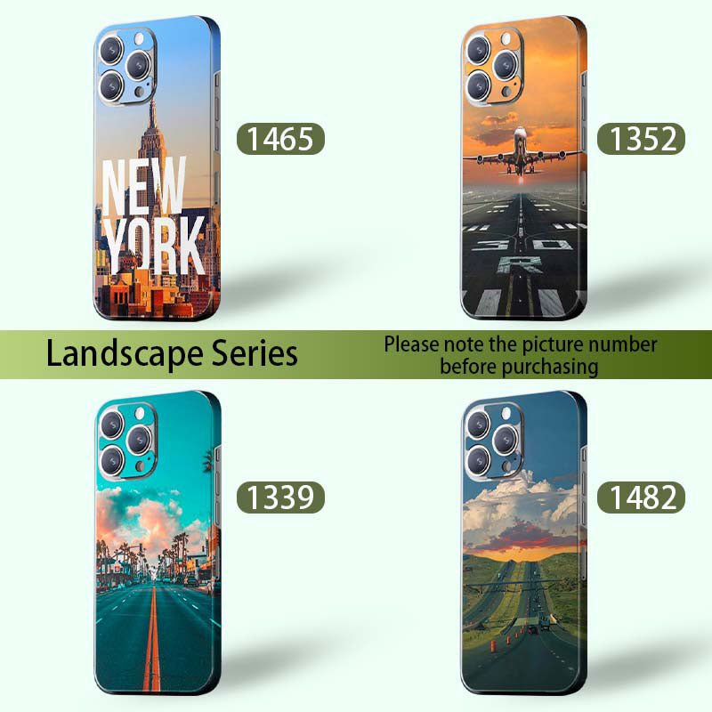 1482 (Bottom Right): The design features a winding countryside road with lush fields and distant clouds, presenting a tranquil rural scene. The main colors are green and blue.