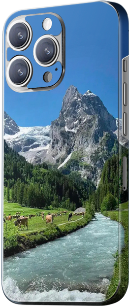 1483 (Bottom Right): The design showcases the picturesque beauty of the Alps, with a clear stream running through lush green meadows and snow-capped mountains in the background. The main colors are green and blue.