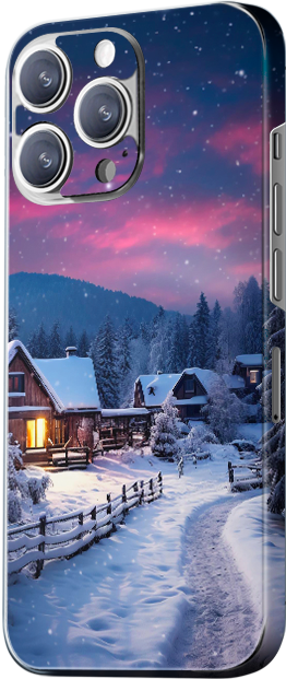1486 (Top Right): The design depicts a cozy snow-covered cabin under a starry sky, evoking the warmth of winter. The main colors are blue and white.