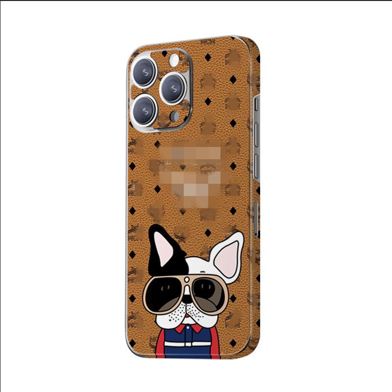 Design 2381 (Bottom Left): This MCM design presents the brand’s iconic brown pattern, with a fun, fashionable twist featuring a cartoon dog wearing sunglasses. The playful yet stylish design is a mix of brown, black, and white.