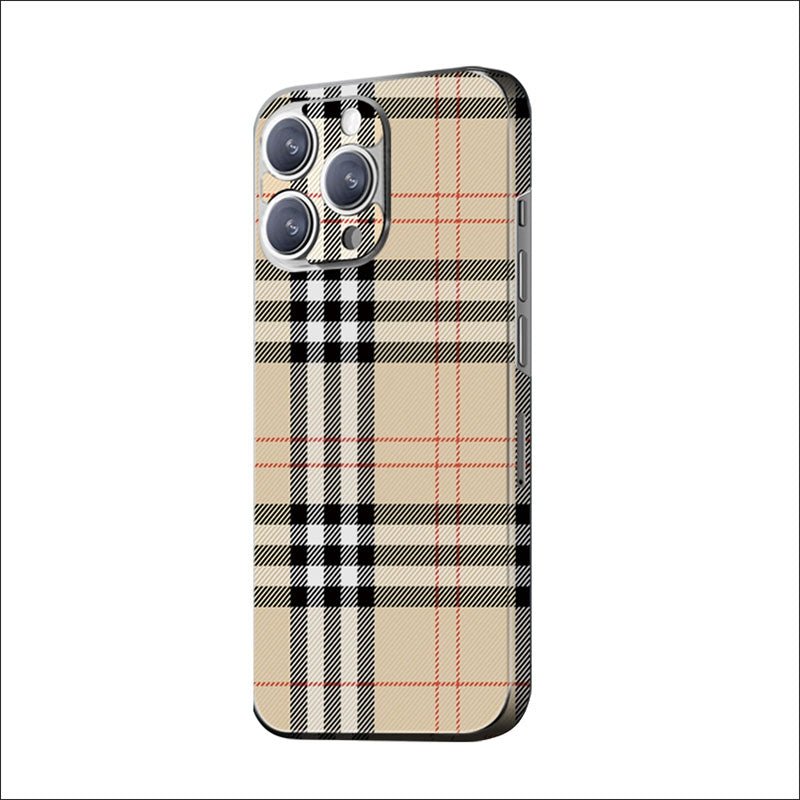 Design 2384 (Bottom Right): Featuring Burberry’s signature plaid pattern, this design blends light brown with red lines, evoking both a vintage and stylish aesthetic. The main colors are brown and red.