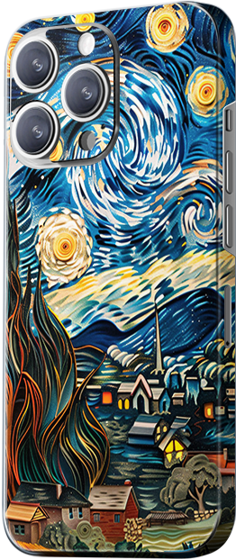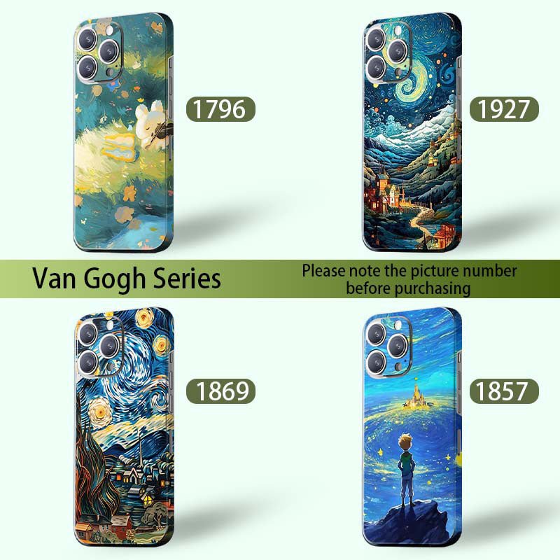1869 (Bottom Left): Displays Van Gogh’s famous “Starry Night” painting, with swirling night skies and a village below. The design evokes strong artistic emotion and impact. The main colors are blue, yellow, and black.